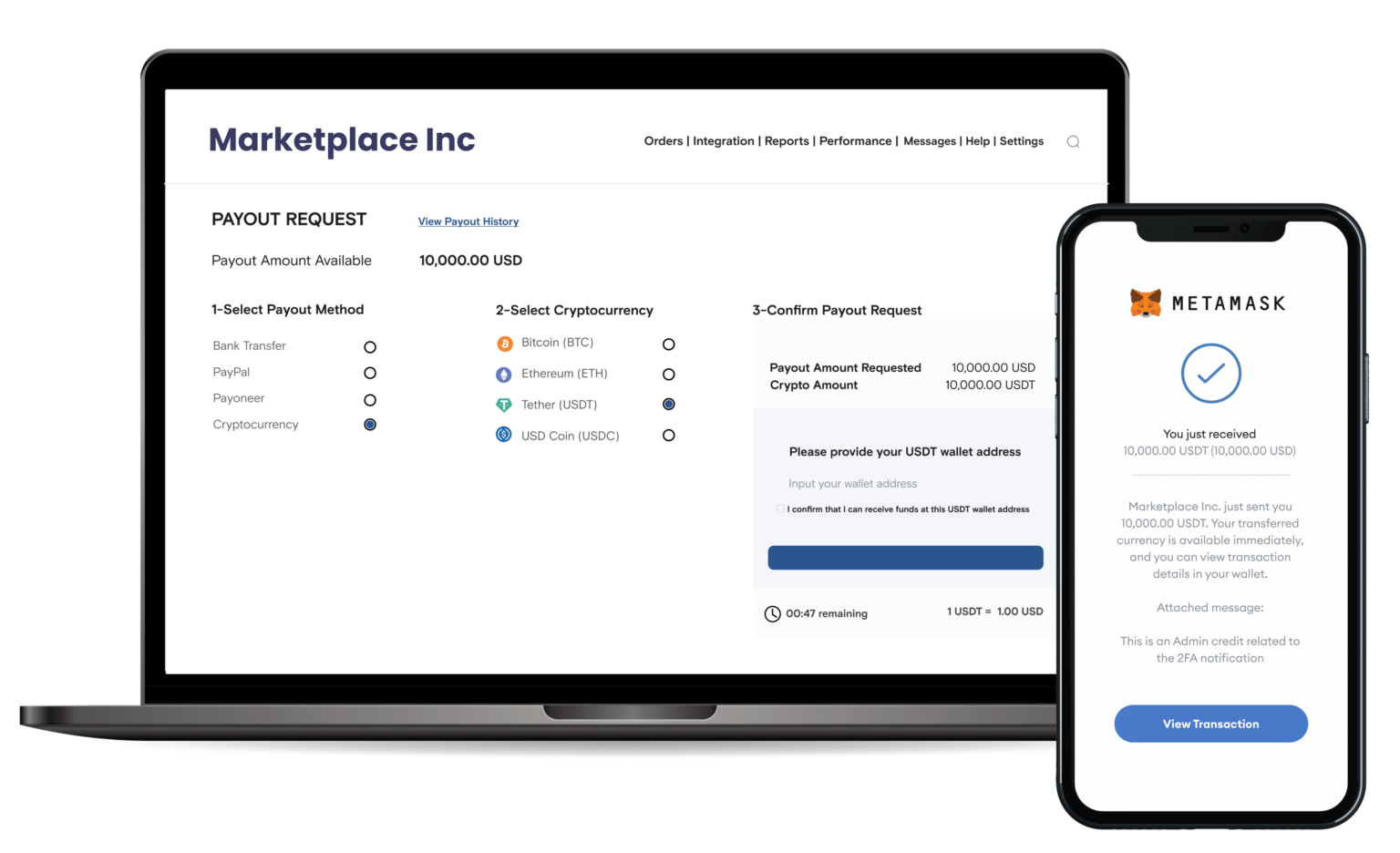 Allow your payees to request payouts in digital currencies on your own platform.